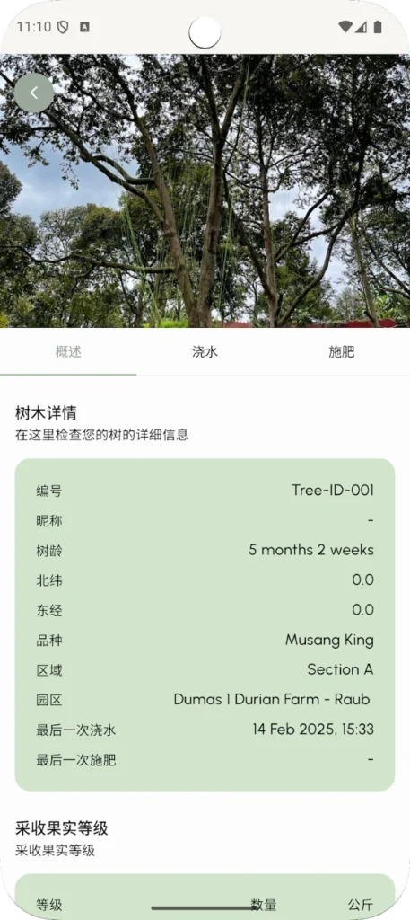 除了农业管理系统的整体方案外,Smart Orchard 也推出了配套的移动应用程序 Smart Orchard System (Viewer),为榴莲种植投资人及果园爱好者提供直观便捷的实时监测工具。用户可通过该应用随时掌握树木的健康状况、生长进度与投资表现,同时浏览关键环境数据与果园运营信息,提升农务透明度与管理效率。这一用户友好的智能平台,不仅促进精细农业的发展,也展现了区块链技术在日常农业投资中的实际应用潜力。